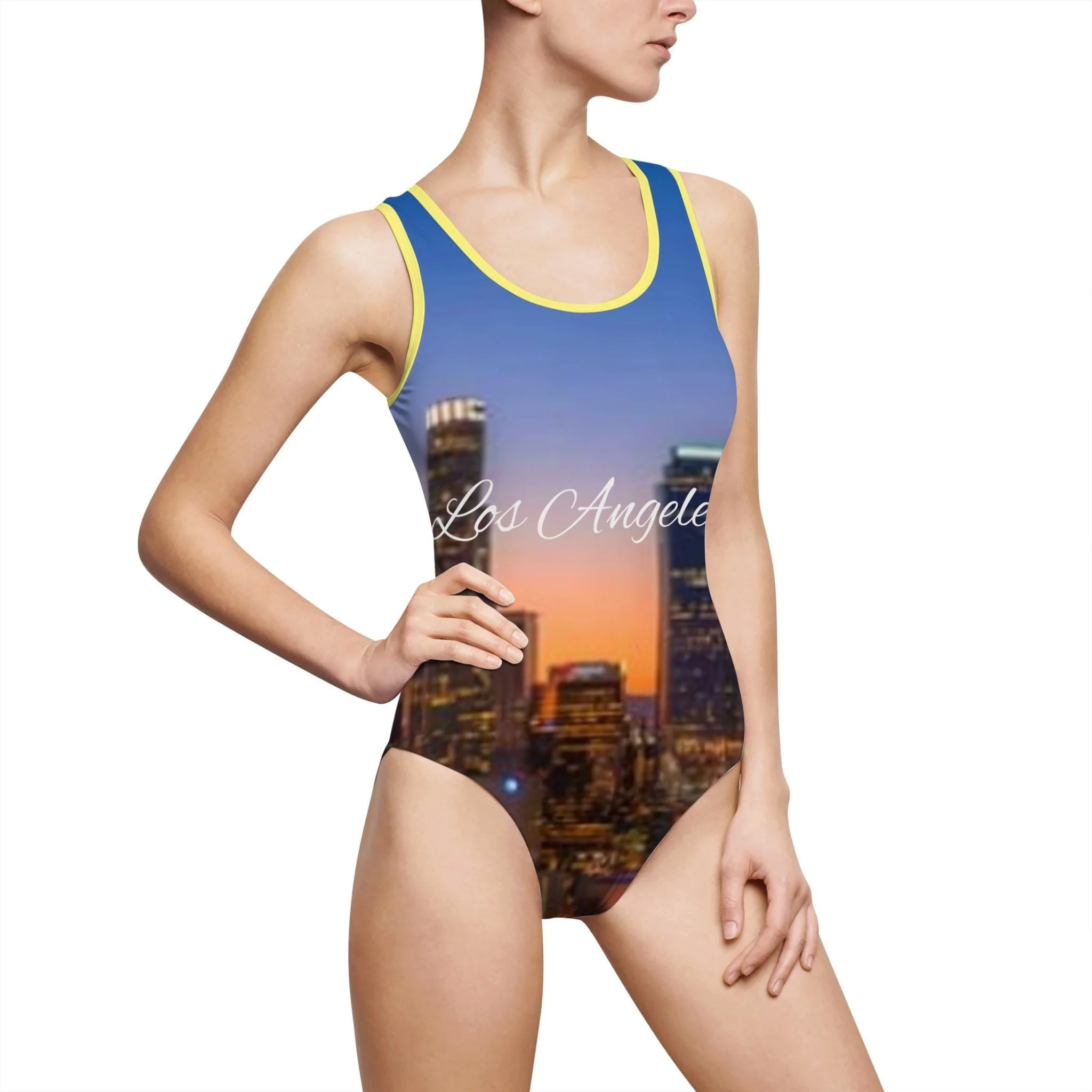 Los Angeles Cityscape Swimsuit, Womens Beachwear, Summer Swim Essential, Vacation Ready, Pool Party Outfit, Travel Swimwear